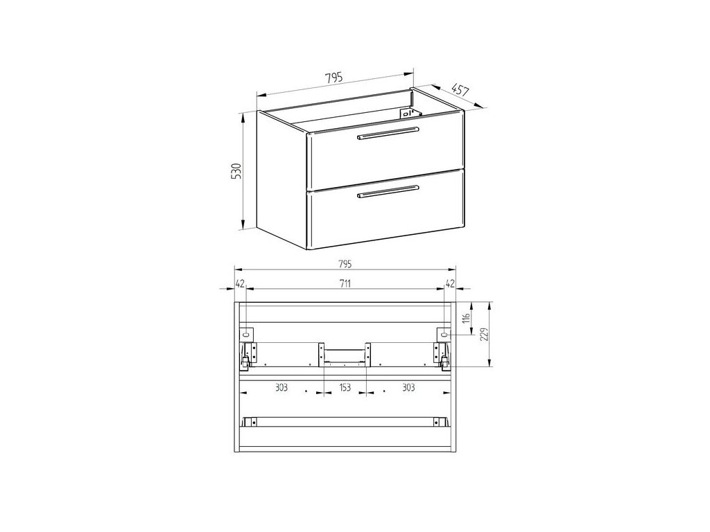 - v horní zásuvce skříňky je vykrojení pro umyvadlový sifon