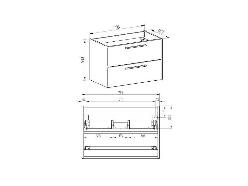 - v horní zásuvce skříňky je vykrojení pro umyvadlový sifon