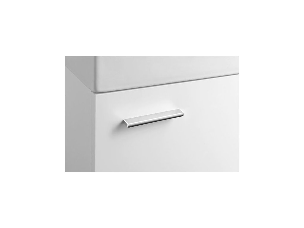 Naše nová generace koupelnového nábytku. Moderní design umyvadel je sladěn s ostrými hranami skříněk a podtržen elegantními plochými úchytkami v chromu.