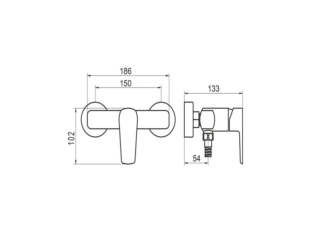 Kvalitní a odolná keramická kartuše KEROX 35 mm. Prvotřídní chromové provedení. Sprchová nástěnná baterie se spodním vývodem vody s roztečí 150 mm.