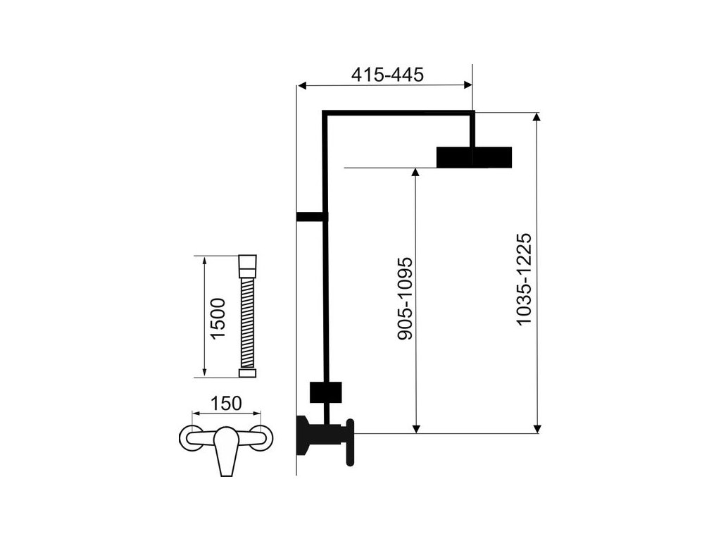 - termostatická baterie s horním vývodem a roztečí 150 mm