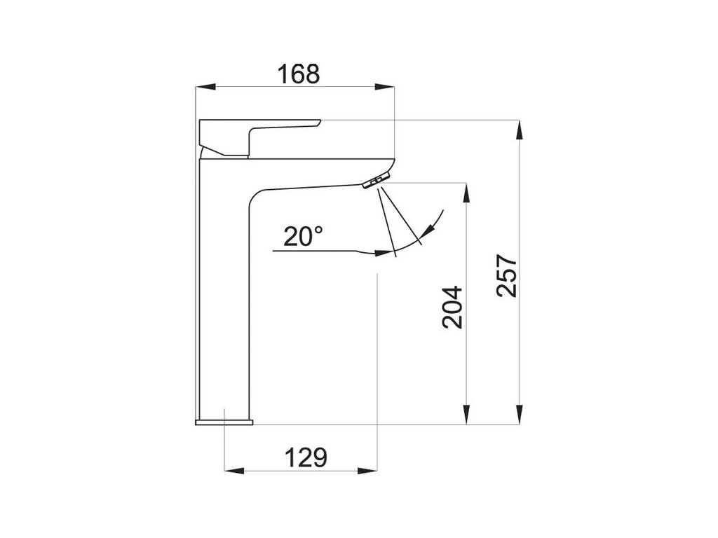 Kvalitní a odolná keramická kartuše KEROX 35 mm. Prvotřídní chromové provedení. Umyvadlová baterie s výpustí click - clack s výškou 257 mm a délkou výtokového ramínka 129 mm. Úsporný a výklopný aerátor s průtokem pouze 7,5-9 l/min a možností naklonění až o 20 stupňů. Součástí baterie jsou přívodní hadičky.