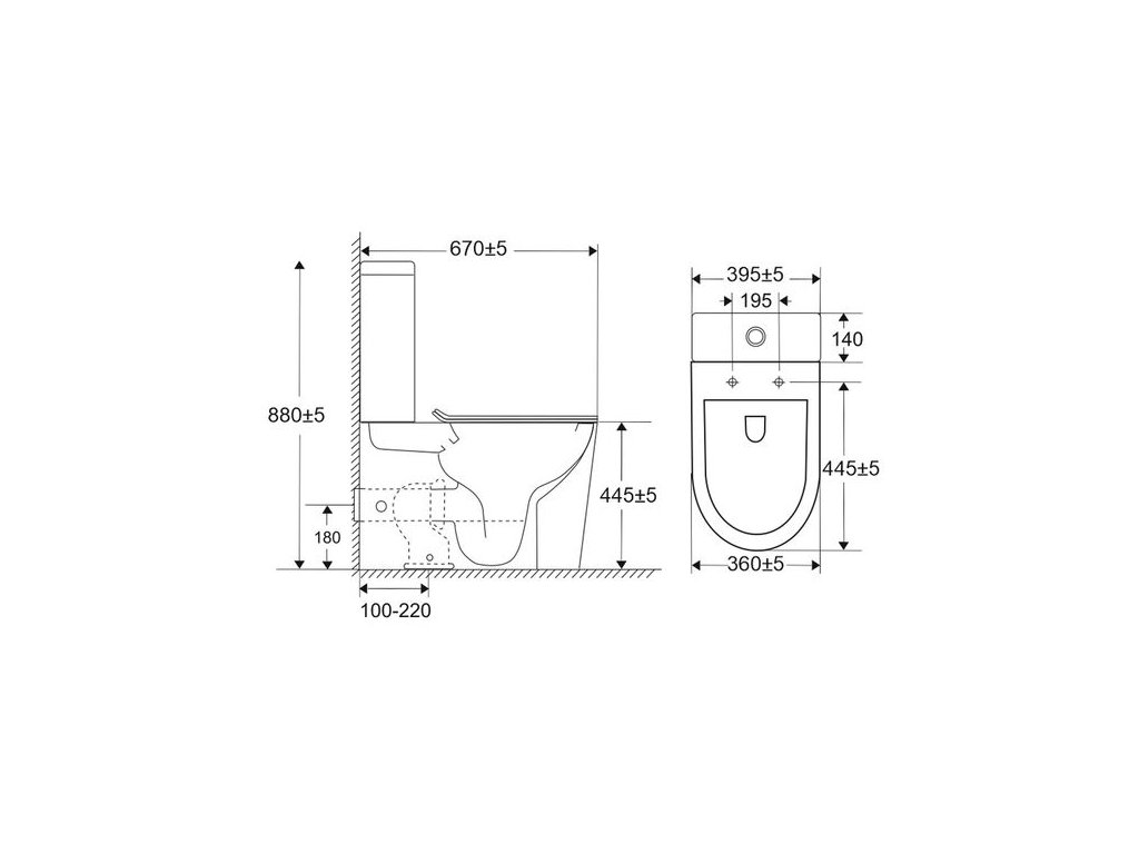 Kapotovaná vyvýšená WC mísa včetně sedátka a nádržky. Díky novému tvaru mísy odpadá složité čištění splachovacího žlábku pod okrajem mísy, který je používaný na klasických klozetech, a kde by se mohly hromadit bakterie, špína a usazeniny. Okruh Rimless, kterým toaleta disponuje, je promyšlený způsob vedení vody, který zajišťuje účinný oplach a také snadné čištění WC mísy.