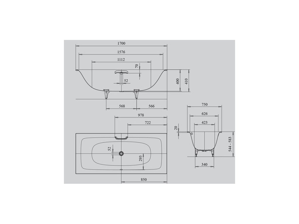 - celoplošný antislip: 780 x 252 mm -jde o nanesenou povrchovou úpravu na dně vany, která zabraňuje uklouznutí při vstupu nebo výstupu z vany - vizuálně není viditelná a povrch je hladký
