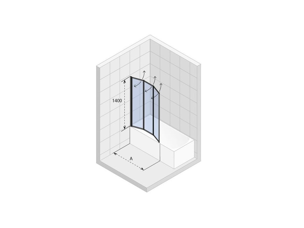 - složená zástěna má šířku 35,5 cm, rozložená 100 cm (A na nákresu)