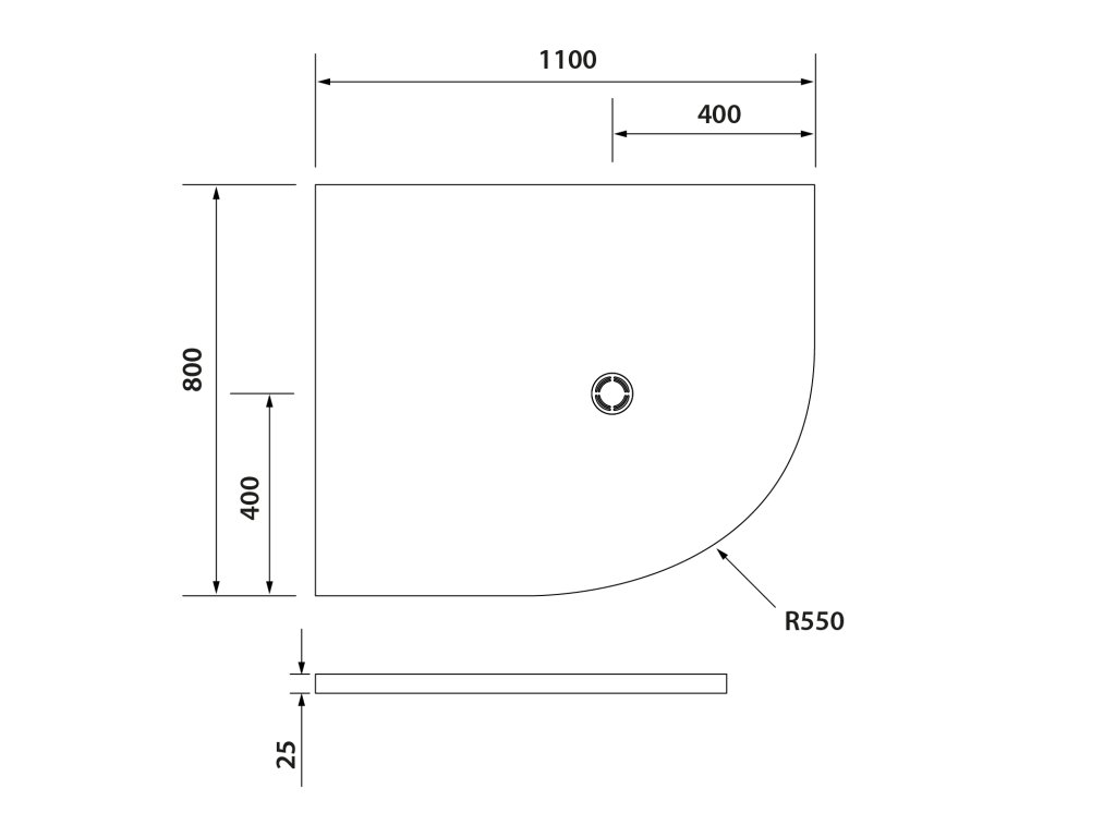 - Čtvrtkruhové vaničky nabízíme v rozměrech 80x80 až 120x90 cm