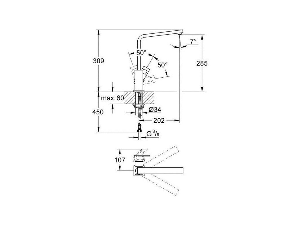 Grohe 31255000 Eurocube Baterie stojánková dřezová vysoká, bez výpusti