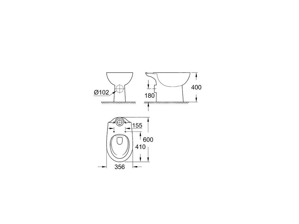 Grohe Bau Ceramic Stojící WC mísa Rimless, alpská bílá