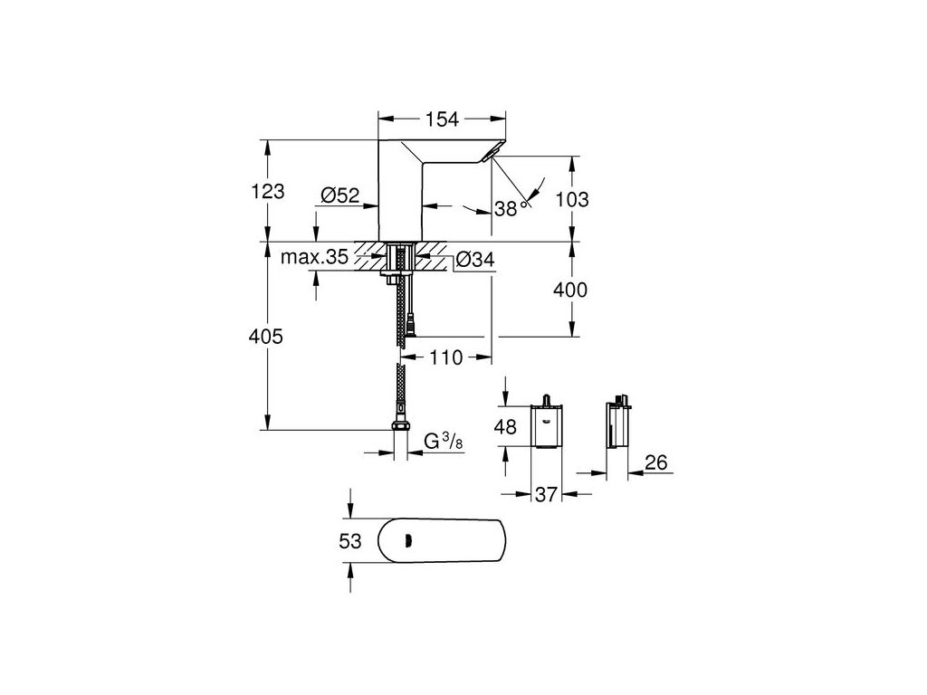 Grohe Bau Cosmopolitan E Baterie elektronická umyvadlová bez směšování, chrom