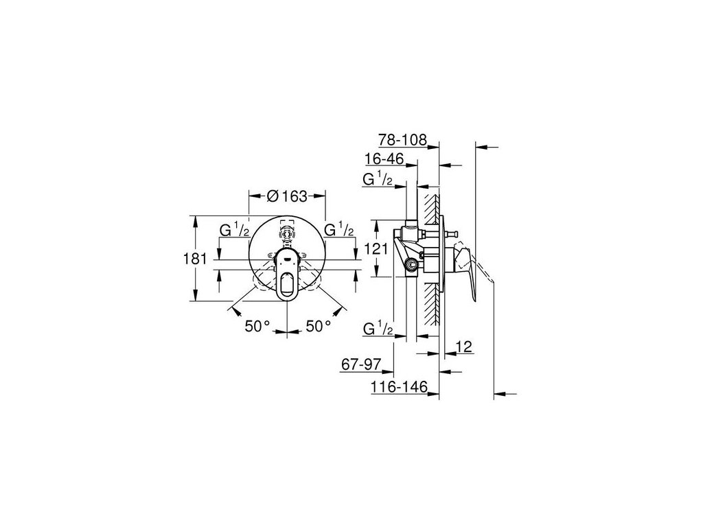 Grohe Bau Loop - páková Baterie vanová pod omítku, chrom 29081000