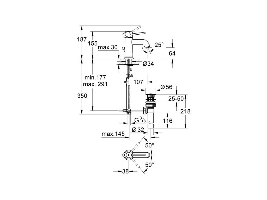 Grohe BauClassic Baterie umyvadlová s výpustí, chrom 23161000