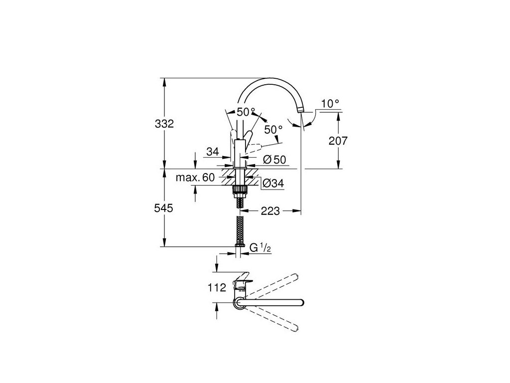 Grohe BauCurve Baterie dřezová otočná, chrom 31231001