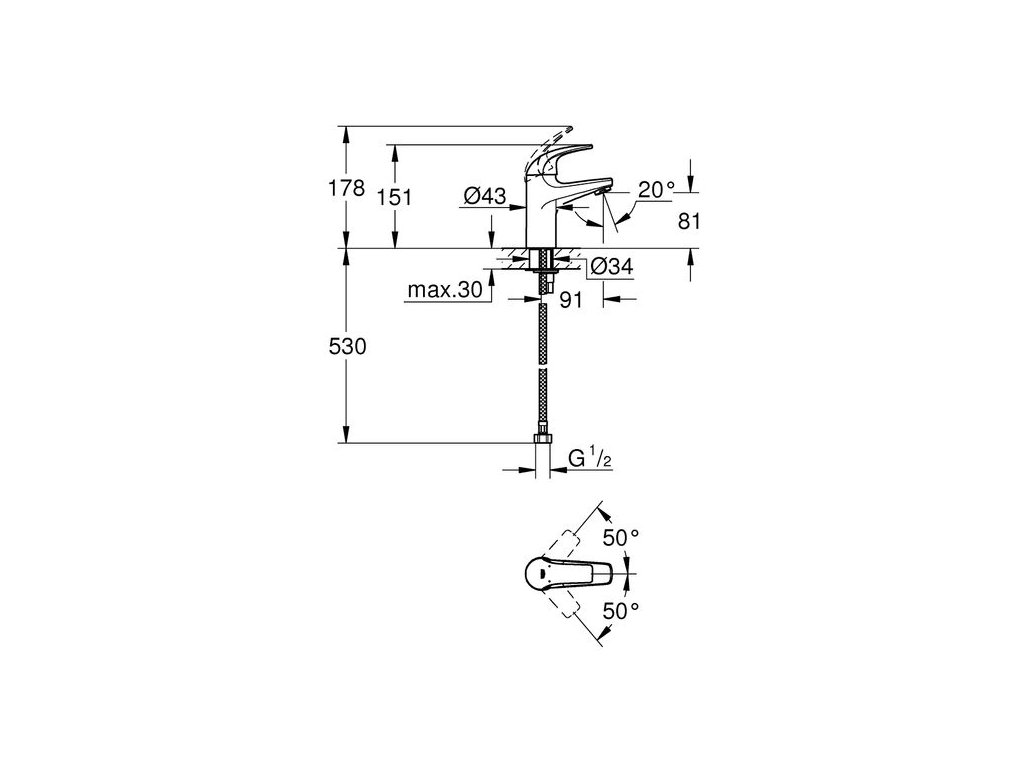 Grohe BauCurve Baterie umyvadlová, chrom