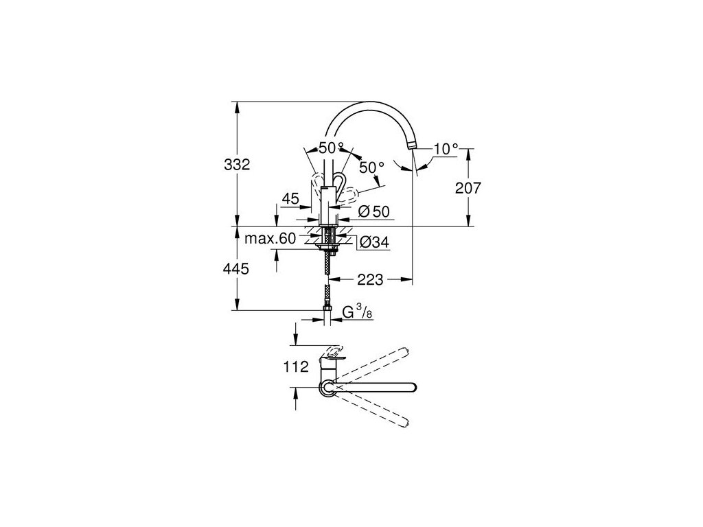 Grohe BauLoop Páková Baterie dřezová, chrom 31368000