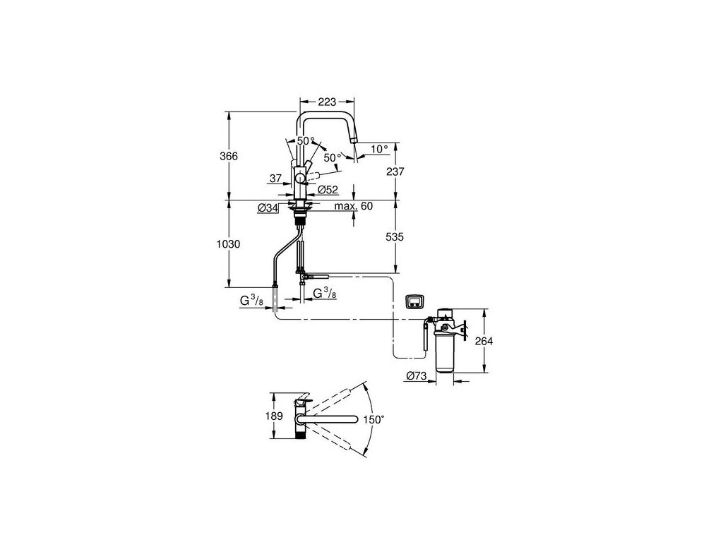 Grohe Blue Pure Start Baterie dřezová s filtrační sadou s uhlím, chrom 30596000
