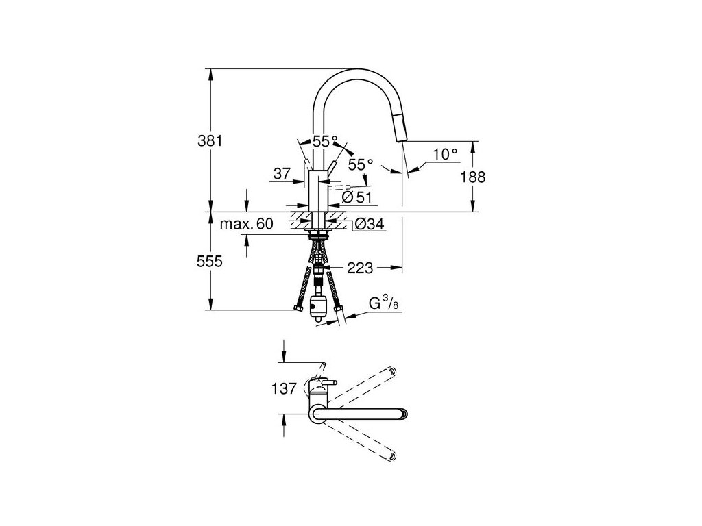 - vytahovací sprška Dualní