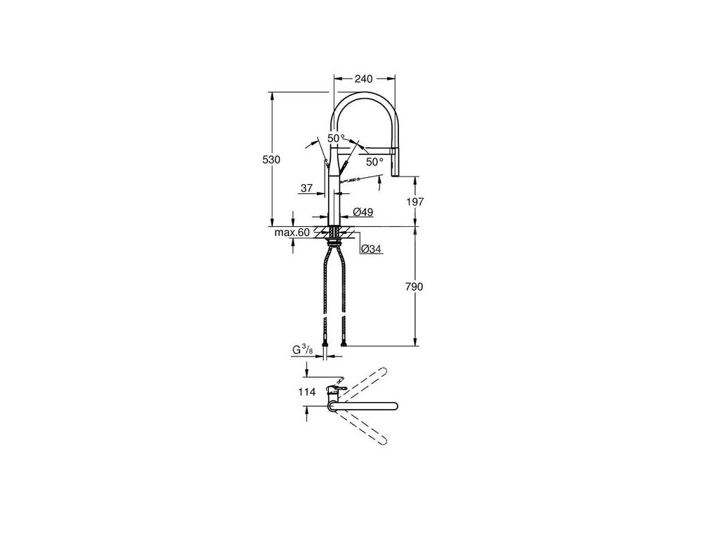 Výpusť nabízí 360° rozsah otáčení, abyste mohli pokrýt každý kout dřezu, zatímco profesionální sprcha je ideální pro oplachování zeleniny nebo plnění hrnců a nabízí dva režimy proudu – standardní a výkonnou trysku. Rovněž rozšíří váš dosah v případě, že v kuchyni máte dvojitý dřez. A jakmile skončíte, systém GROHE EasyDock M zaručí, že se sprcha automaticky zasune zpět do výpusti prostřednictvím silného magnetu. Jedná se o dokonalý doplněk všech moderních kuchyní, především díky svému industriálnímu designu, dramatickým křivkám a pečlivě promyšleným detailům, ale také díky hadici, která je k dispozici v 10 barevných variantách.