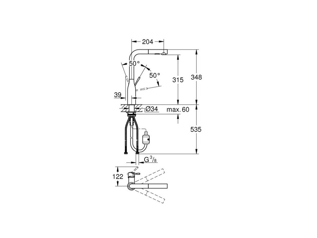 Kuchyňská baterie GROHE Essence je ideálním řešením do kuchyní, ve kterých záleží na výkonu a funkcích. Byla navržena tak, aby každé moderní kuchyni dodala elegantní, avšak minimalistický prvek. Baterie nabízí výpusť, kterou lze otáčet v rozsahu plných 360°, a kovovou vytahovací sprchovou hlavici se dvěma režimy proudu – jemným a intenzivním, mezi kterými je možné snadno přepínat pomocí jediného tlačítka. Takovou sprchu oceníte u široké škály kuchyňských činností, od plnění hrnců po oplachování zeleniny a následné čištění. Rovněž rozšíří váš dosah v případě, že v kuchyni máte dvojitý dřez. A jakmile skončíte, systém GROHE EasyDock zaručí, že se sprcha automaticky zasune zpět do výpusti. Součástí této baterie je rovněž technologie GROHE SilkMove, která zajišťuje precizní a plynulou regulaci objemu vody a její teploty. Matná povrchová úprava GROHE StarLight je odolná vůči poškrábání a snadno udržovatelná.