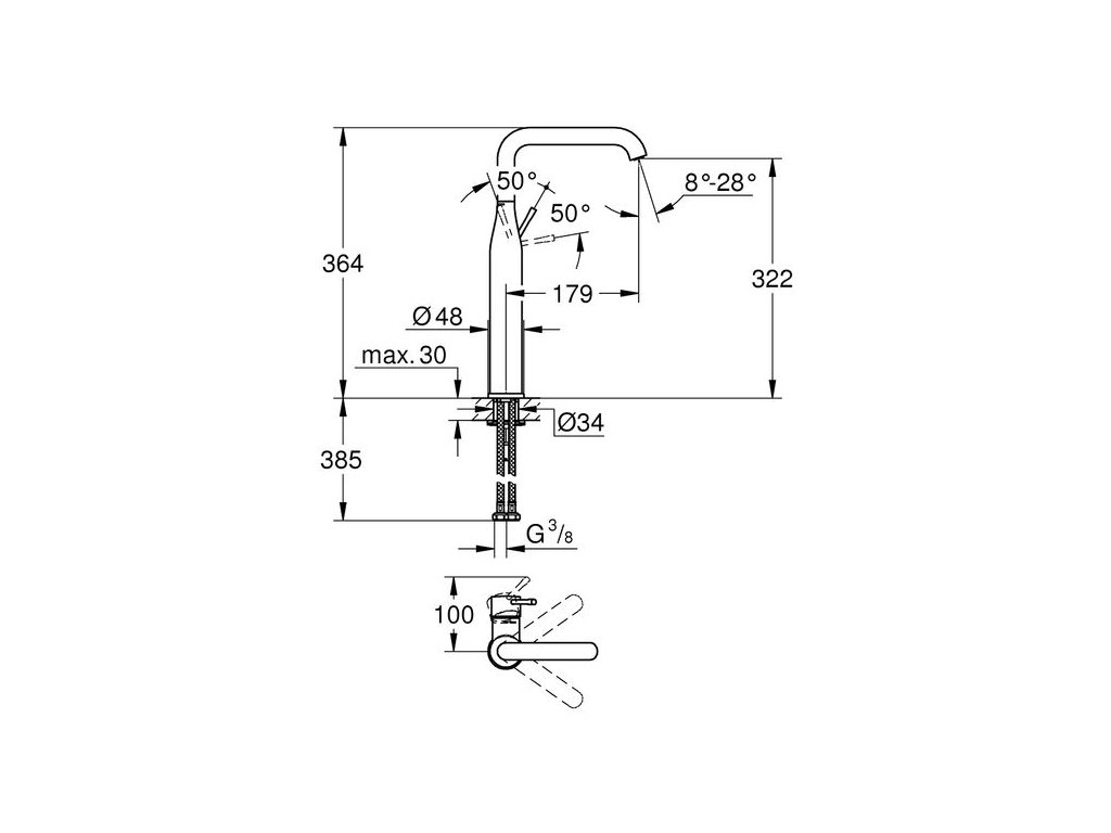 Grohe Essence New Baterie umyvadlová, bez výpusti, kartáčovaný Hard Graphite 32901AL1