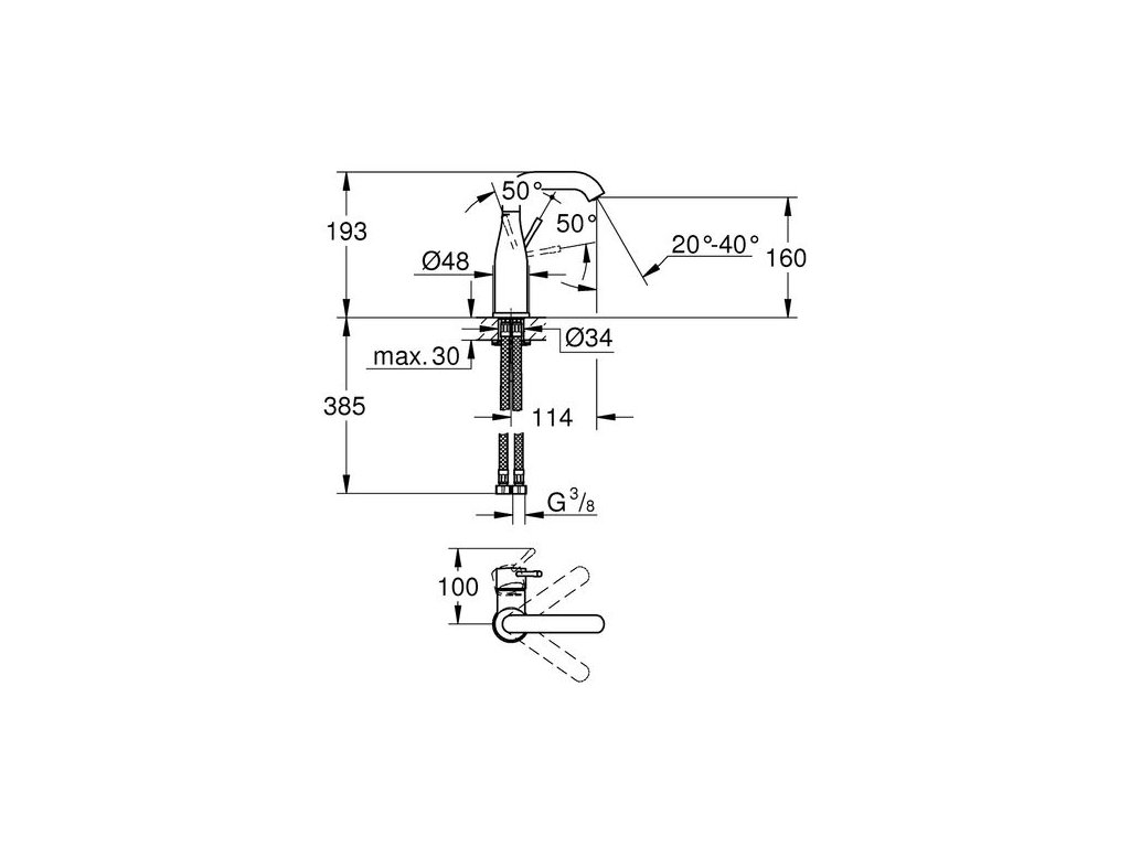 Grohe Essence New Baterie umyvadlová, bez výpusti 23463001