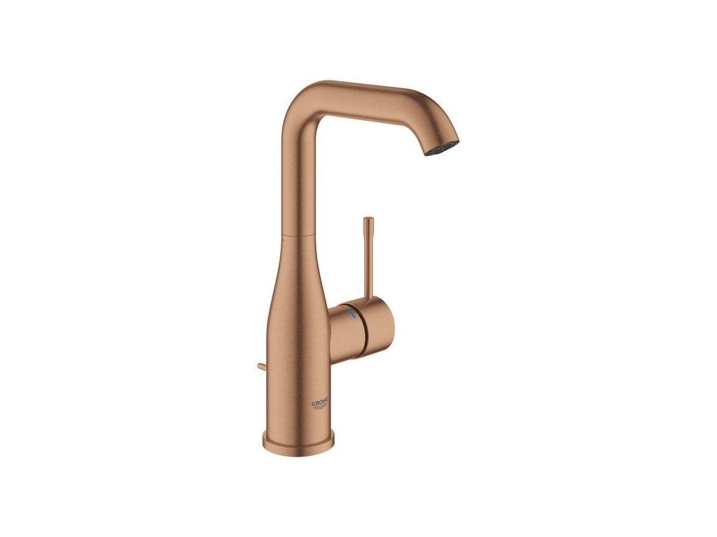 Tato páková umyvadlová baterie GROHE Essence s odtokovou soupravou představuje elegantní třešničku na dortu každé koupelny, od moderních po tradiční, a to díky svému štíhlému, oválnému tělu, charakteristické zahnuté výpusti a povrchové úpravě Brushed Warm Sunset. Protože je plná technologií GROHE, je radost s ní pracovat. Díky keramické kartuši GROHE SilkMove je pohyb páky regulující objem tekoucí vody a její teplotu mimořádně hladký a plynulý. A technologie GROHE EcoJoy omezuje průtok vody na 5,7 l/min., což šetří vodu i peníze. Nabízí dokonce nastavitelný rozsah otáčení pro naprostou flexibilitu – můžete otáčení výpusti zcela uzamknout, omezit otáčení do rozsahu 150° nebo si vychutnat plný, 360° rozsah otáčení.