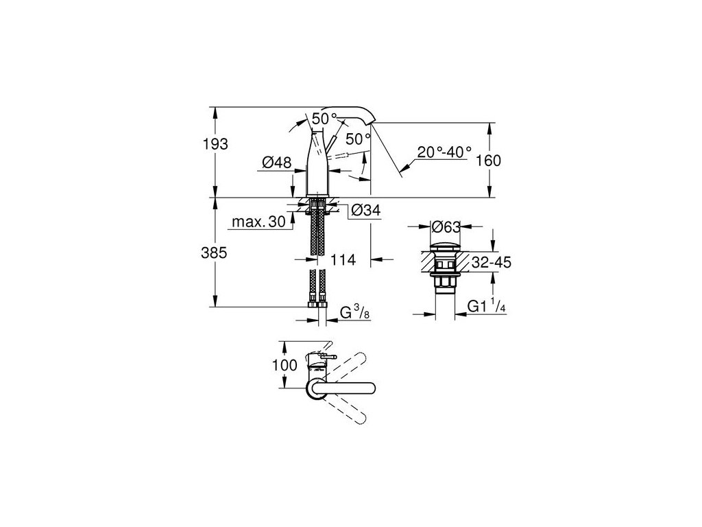 Grohe Essence New Baterie umyvadlová, s výpustí 23798001