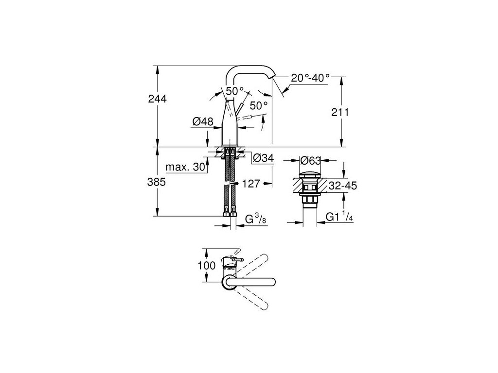 Grohe Essence New Baterie umyvadlová, s výpustí 23799001