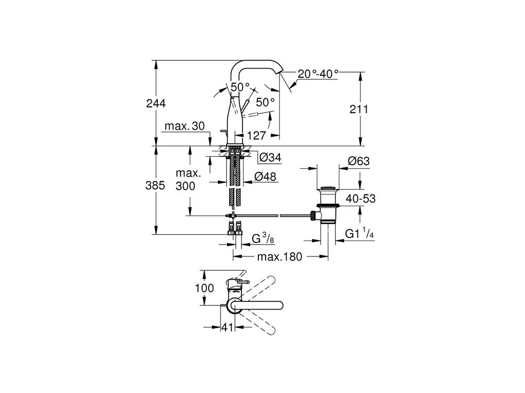 Tato páková umyvadlová baterie GROHE Essence s odtokovou soupravou představuje elegantní třešničku na dortu každé koupelny, od moderních po tradiční, a to díky svému štíhlému, oválnému tělu, charakteristické zahnuté výpusti a povrchové úpravě Brushed Cool Sunrise. Protože je plná technologií GROHE, je radost s ní pracovat. Díky keramické kartuši GROHE SilkMove je pohyb páky regulující objem tekoucí vody a její teplotu mimořádně hladký a plynulý. A technologie GROHE EcoJoy omezuje průtok vody na 5,7 l/min., což šetří vodu i peníze. Nabízí dokonce nastavitelný rozsah otáčení pro naprostou flexibilitu – můžete otáčení výpusti zcela uzamknout, omezit otáčení do rozsahu 150° nebo si vychutnat plný, 360° rozsah otáčení.