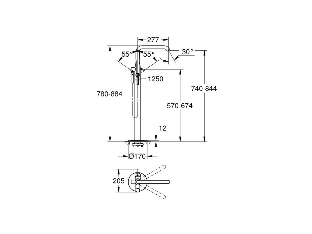 Technologie GROHE EcoJoy omezuje průtok vody na 7,6 l/min., což šetří vodu i peníze. Před instalací je nutné zakoupit montážní sadu GROHE 45984. Tato působivá podlahová baterie je fascinující kombinací formy a funkce, která vhodně doplňuje ostatní produkty z řady Brushed Hard Graphite, například pákovou vanovou baterii Essence, pro vytvoření dokonale sladěné koupelny.