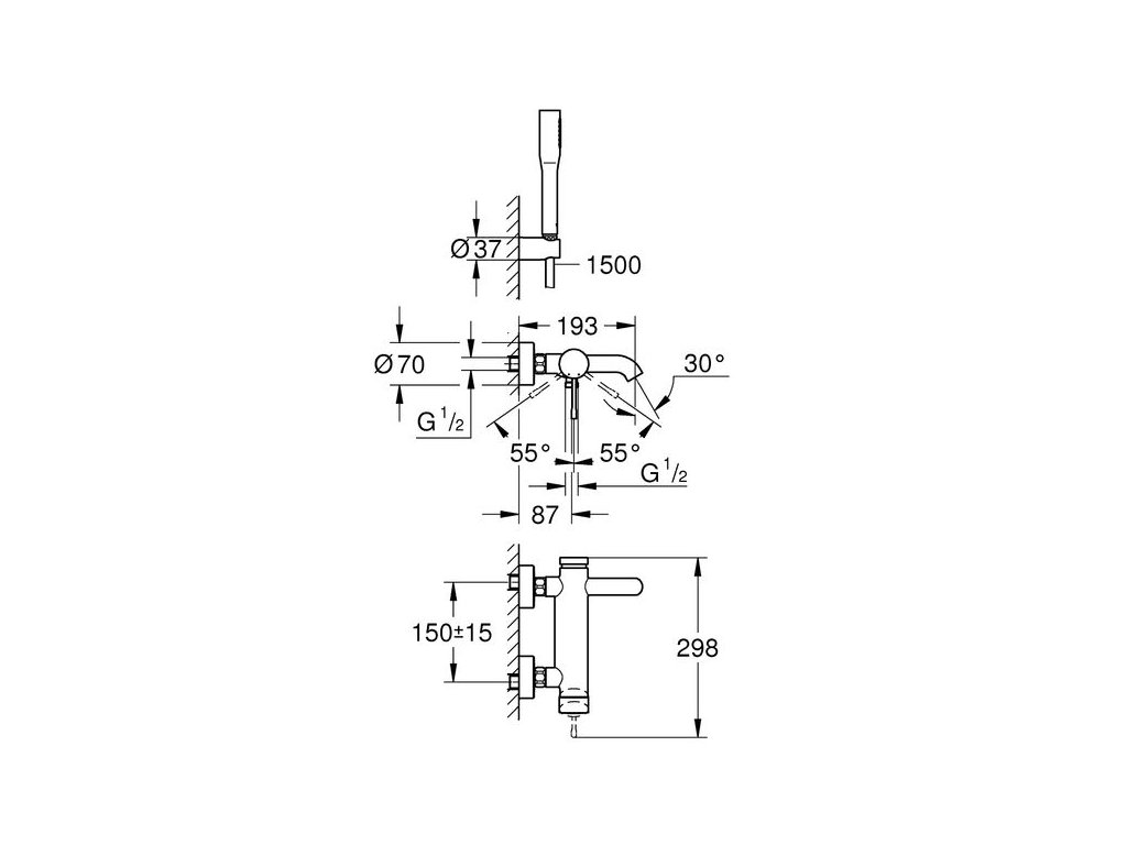 Grohe Essence New Baterie vanová se sprchou, nástěnná 33628001