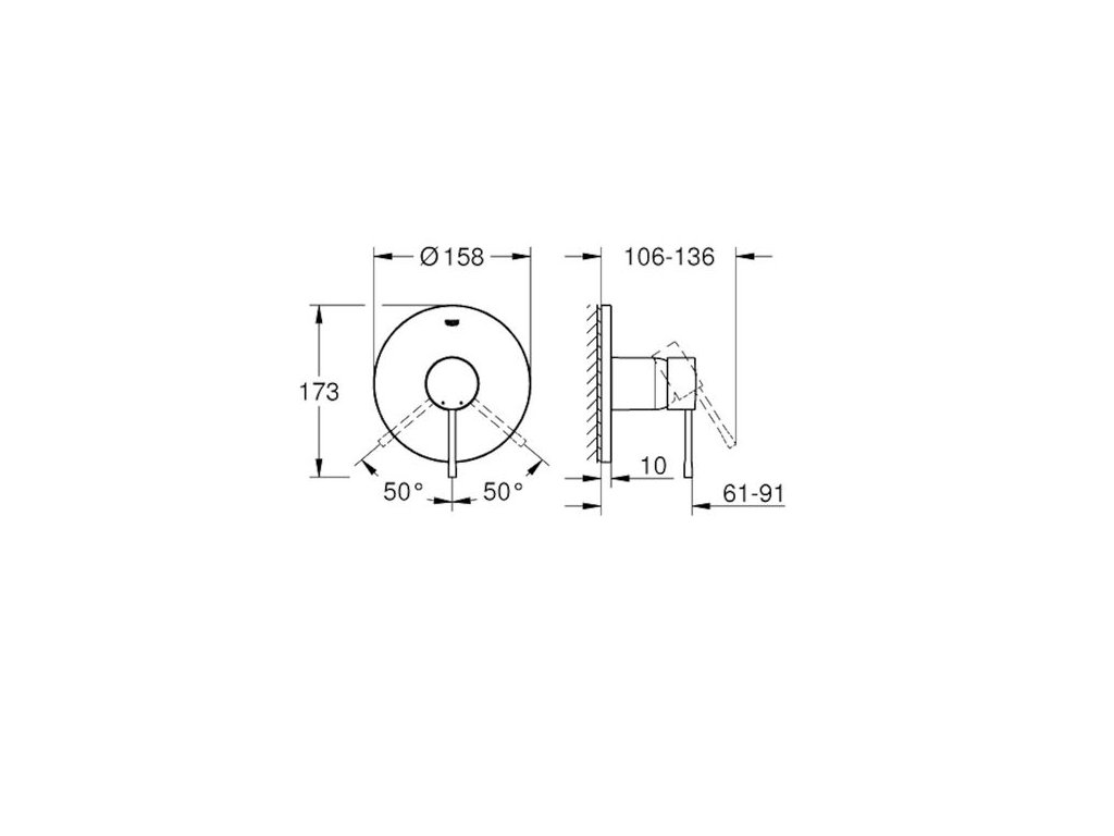 Ergonomický design vybízí uživatele k interakci, zatímco robustní kování a ovládací páka vyvolávají pocit solidního řemeslného zpracování. Štíhlá konstrukce – nástěnný panel disponuje průměrem 158 mm a tloušťkou pouhých 10 mm – zaručeně potěší všechny milovníky minimalistického designu. Díky keramické kartuši GROHE SilkMove si budete moci vychutnat hladkou a precizní regulaci objemu vody a její teploty, a to po celou dlouhou dobu životnosti baterie. A jelikož její odolná povrchová úprava GROHE StarLight je vyrobena metodou fyzikální depozice z plynné fáze (PVD), bude baterie vypadat dokonale mnoho následujících let. Systém GROHE QuickFix s patentovaným uzamykacím mechanismem a krytými šrouby s těsněním činí instalaci rychlou a jednoduchou.