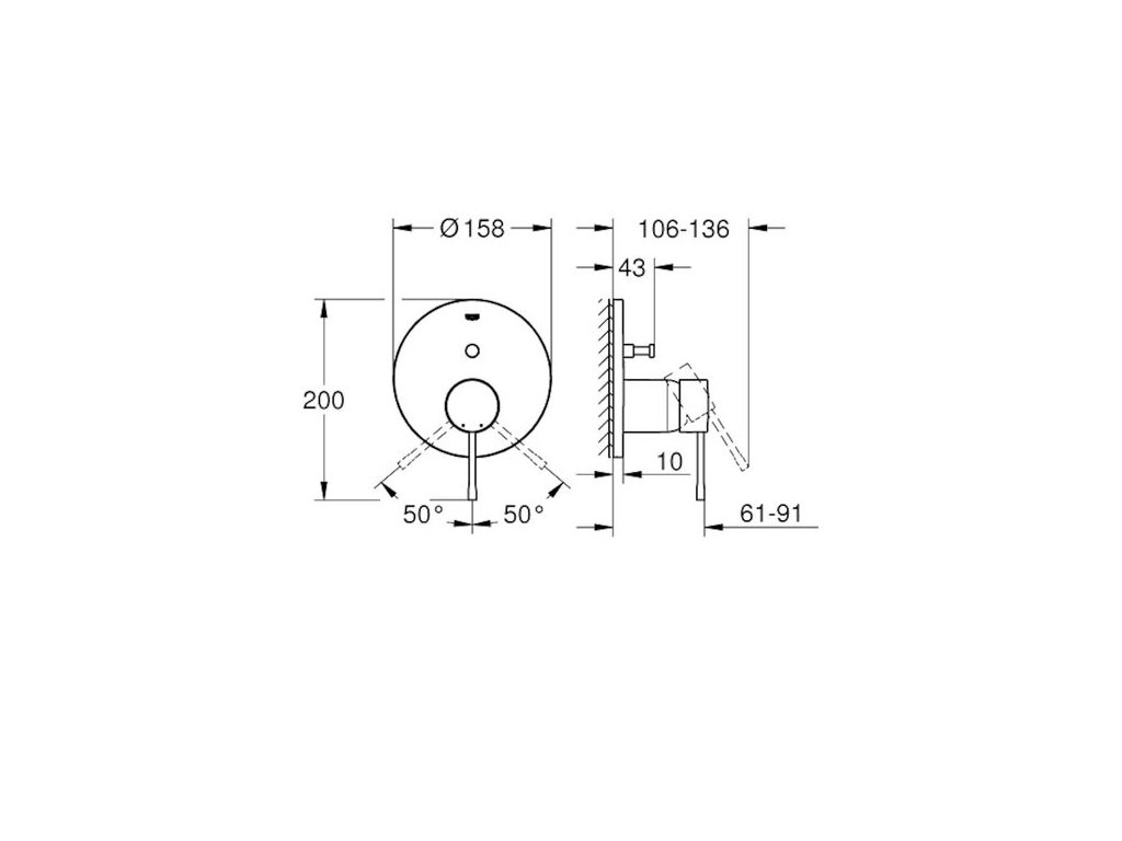 Ergonomický design vybízí uživatele k interakci, zatímco robustní kování a ovládací páka vyvolávají pocit solidního řemeslného zpracování. Štíhlá konstrukce – nástěnný panel disponuje průměrem 158 mm a tloušťkou pouhých 10 mm – zaručeně potěší všechny milovníky minimalistického designu. Elegantní, 2směrný přepínač má přesah pouhých 43 mm a umožňuje snadné přepínání mezi hlavovou a ruční sprchou, případně mezi sprchou a vanovou výpustí. Díky keramické kartuši GROHE SilkMove si budete moci vychutnat hladkou a precizní regulaci objemu vody a její teploty, a to po celou dlouhou dobu životnosti baterie. A jelikož její odolná povrchová úprava GROHE StarLight je vyrobena metodou fyzikální depozice z plynné fáze (PVD), bude baterie vypadat dokonale mnoho následujících let. Systém GROHE QuickFix s patentovaným uzamykacím mechanismem a krytými šrouby s těsněním činí instalaci rychlou a jednoduchou.