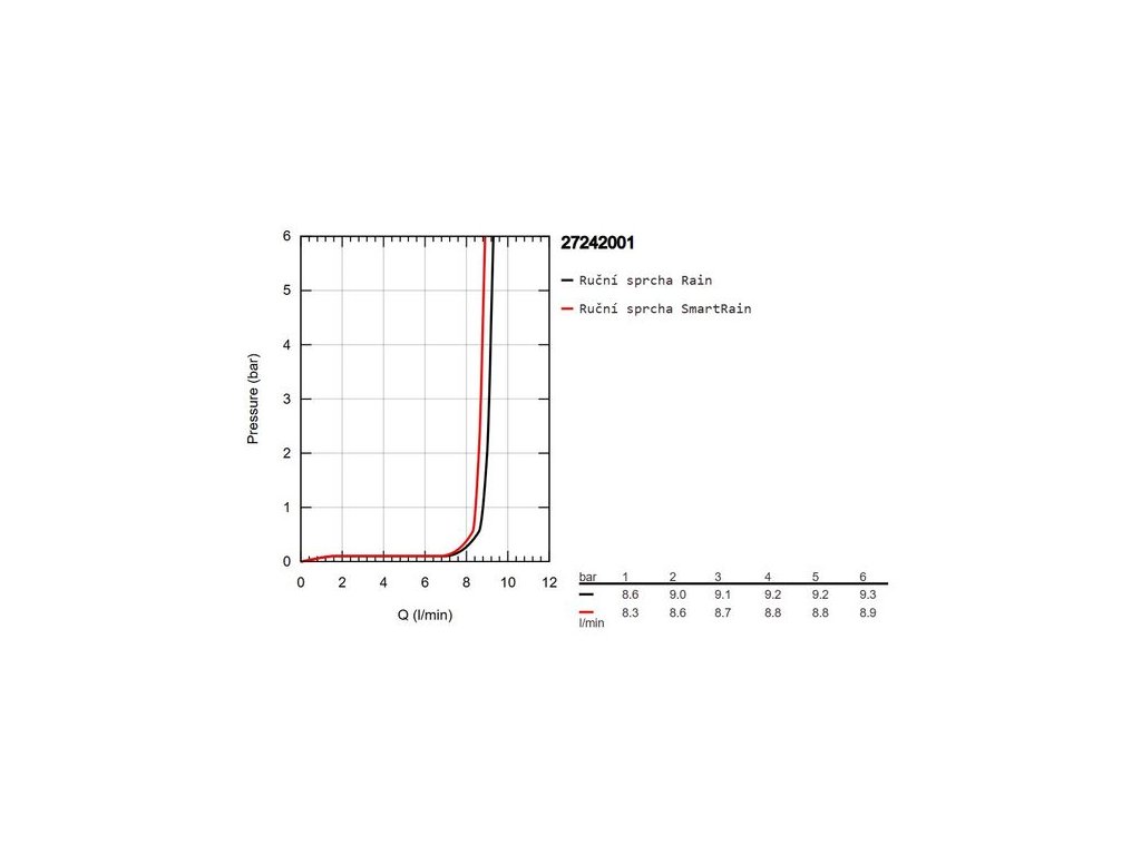 - průtok při 0,3 MPa: SmartRain: 8,7 l/min, Rain: 9,1 l/min