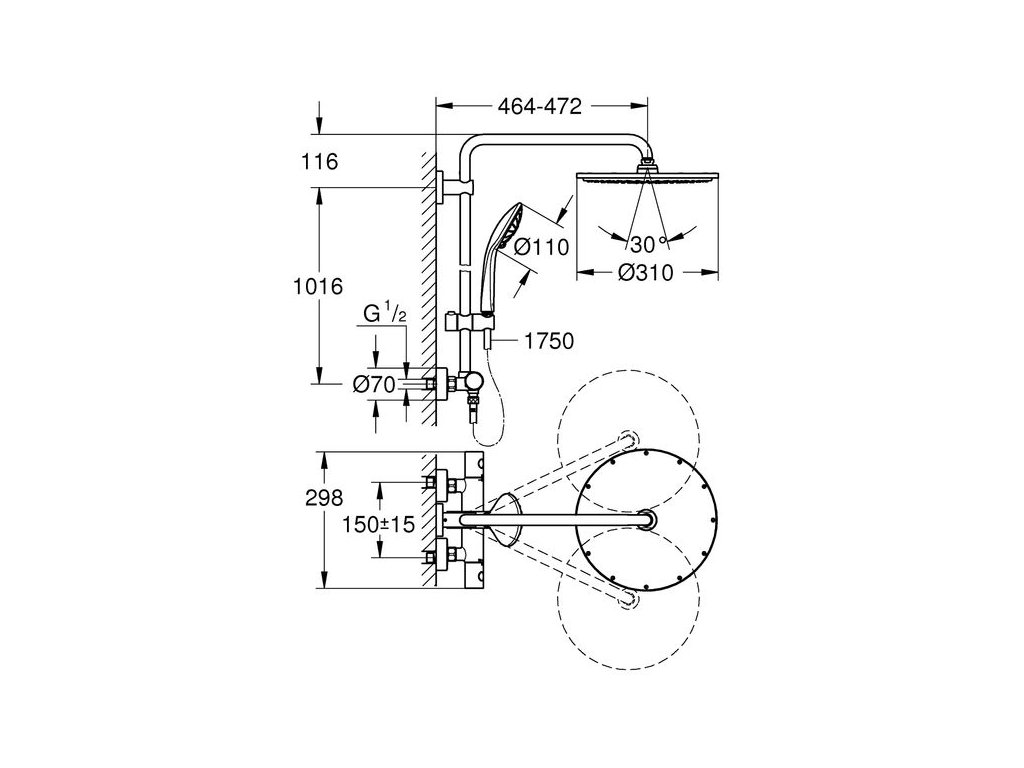 Technologie GROHE DreamSpray zaručuje vyvážený proud vody ze všech trysek, což je perfektní pro uvolňující režim proudu PureRain, který nabízí působivá, 310mm hlavová sprcha Rainshower Cosmopolitan. Rameno hlavové sprchy se otáčí o 180° pro přidanou flexibilitu. Ruční sprcha Euphoria Massage o průměru 110 mm nabízí tři režimy proudu pro dokonalou sprchu na míru současné náladě: uvolňující režim Rain, ekologický SmartRain se sníženou spotřebou vody a revitalizující Massage.