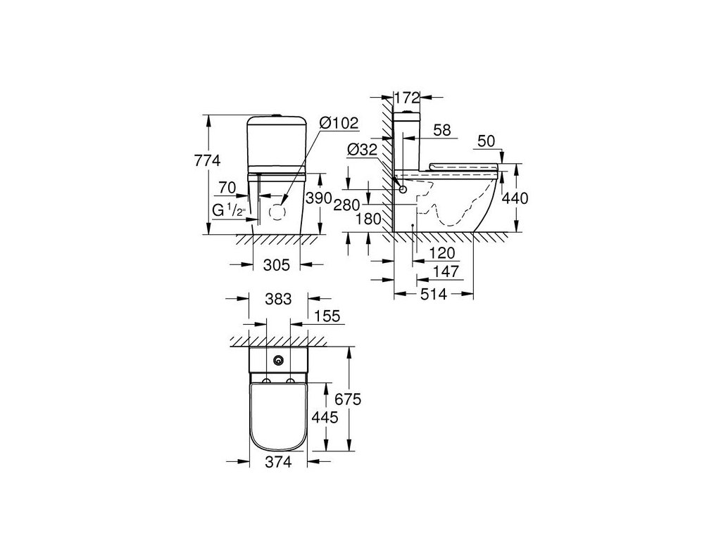 Grohe Euro Ceramic WC kombi s nádržkou, bílá 39462000
