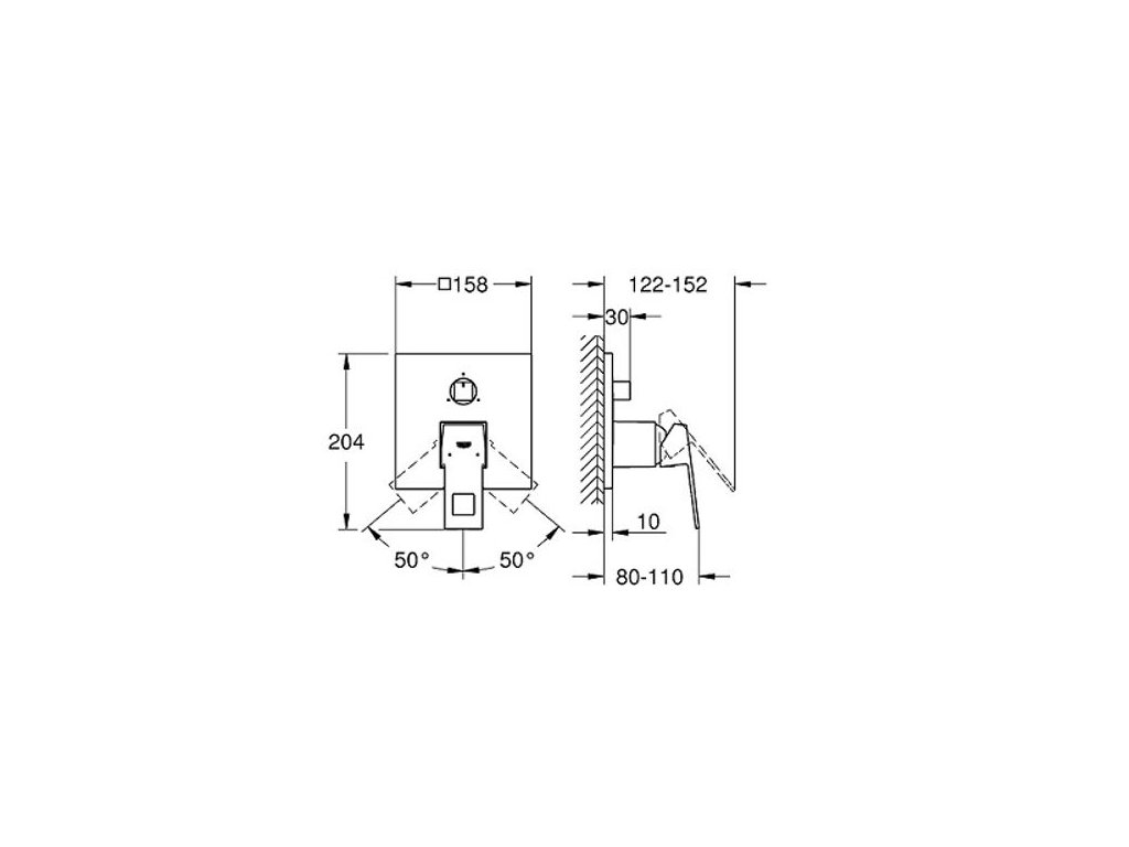 Koupelnová baterie GROHE Eurocube s pákou se stane dokonalou tečkou za renovací vaší vany. Moderní a minimalistické vodovodní baterie GROHE Eurocube, vyrobené v Německu, zaručeně obohatí každou koupelnu. Ergonomický design vybízí uživatele k interakci, zatímco robustní kování a ovládací páka vyvolávají pocit solidního řemeslného zpracování. Štíhlá konstrukce – nástěnný panel disponuje průměrem 158 mm a tloušťkou pouhých 10 mm – zaručeně potěší všechny milovníky minimalistického designu. Inovativní, 3směrný přepínač má na délku pouhých 30 mm a umožňuje přepínat mezi vanovou výpustí, hlavovou a ruční sprchou jednoduše otáčením. Slouží také pro snadné nastavení jednoho ze dvou režimů proudu hlavové sprchy, případně pro spuštění ruční sprchy. Obzvláště vhodnou kombinaci tvoří tato baterie a hlavová sprcha GROHE Rainshower SmartActive se 2 režimy proudu. Díky technologii GROHE SilkMove je pohyb páky regulující objem tekoucí vody a její teplotu mimořádně hladký a plynulý. Robustní chromová povrchová úprava GROHE StarLight zaručuje zachování zářivého lesku po mnoho let. Systém GROHE QuickFix s patentovaným uzamykacím mechanismem a krytými šrouby s těsněním činí instalaci rychlou a jednoduchou. Mějte prosím na paměti, že tuto baterii je možné zapojit pouze v kombinaci s podomítkovým tělesem GROHE Rapido SmartBox (35600000). A můžete se spolehnout: Toto kombinované řešení pro podomítkovou instalaci je 100% utěsněno a zabezpečeno proti úniku vody.