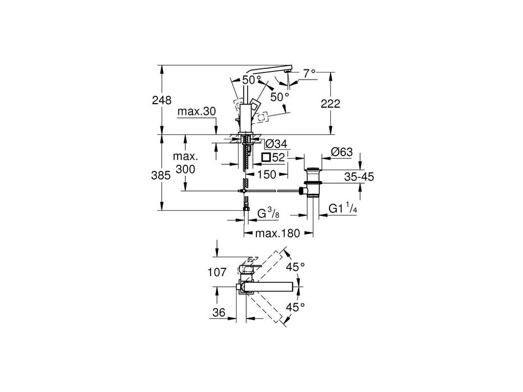 Jedinečná směsice harmonicky minimalistického designu a prémiových technologií. Tato páková umyvadlová baterie GROHE Eurocube v elegantním provedení kartáčovaný Hard Graphite dodá vaší koupelně jedinečný vzhled a charakteristický tvar krychle. Je příjemná na ovládání, má praktický výsuvný odpad a vysokou výpusť, která se plynule otáčí o 90° pro větší pohodlí. Díky keramické kartuši GROHE SilkMove je pohyb robustní kovové páky regulující objem tekoucí vody a její teplotu mimořádně hladký a plynulý. Mimořádně odolná povrchová úprava GROHE StarLight je vyrobena metodou fyzikální depozice z plynné fáze (PVD), která je desetkrát odolnější proti poškrábání než běžný chrom. Instalace je snadná, protože systém GROHE QuickFix Plus včetně flexibilních připojovacích hadic zkracuje dobu montáže až o 50 %.