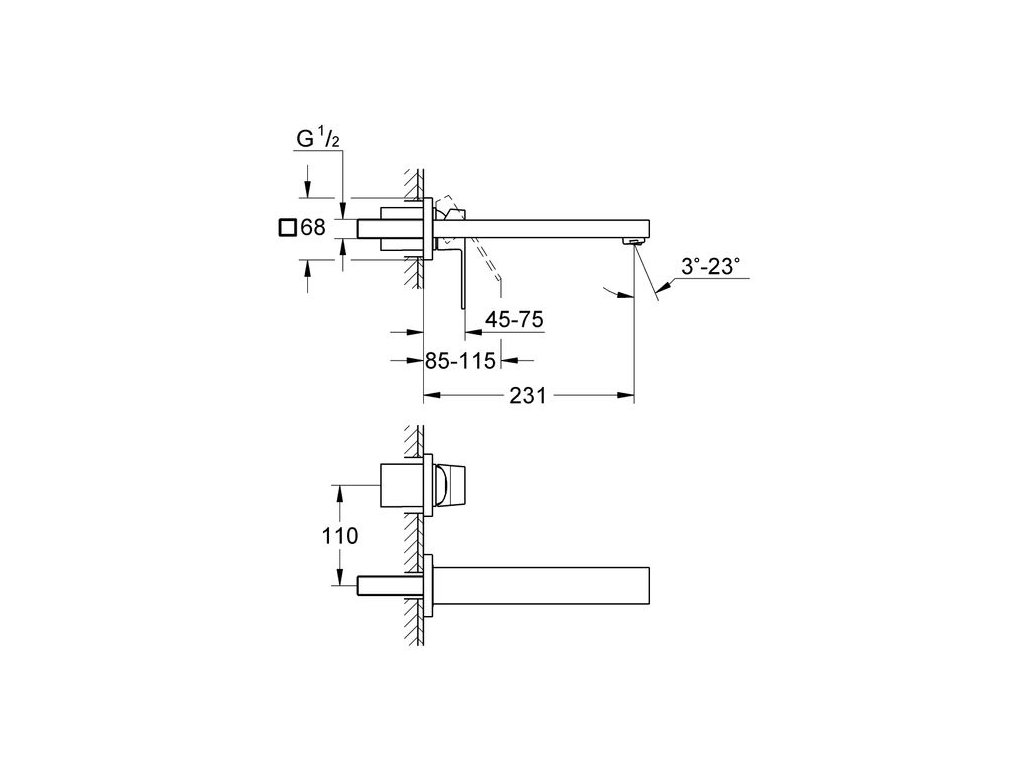 Dodejte své koupelně jedinečnost prostřednictvím této elegantní koupelnové baterie Eurocube. Tato nástěnná dvouotvorová baterie představuje jedinečnou kombinaci atraktivního, moderního designu a špičkového výkonu, který se zasadí o zcela nový nádech vaší koupelny. Nabízí také celou řadu jedinečných funkčních vlastností, výpusť s délkou 231 mm. Patentovaná úsporná technologie GROHE EcoJoy snižuje spotřebu vody až o 50 %.