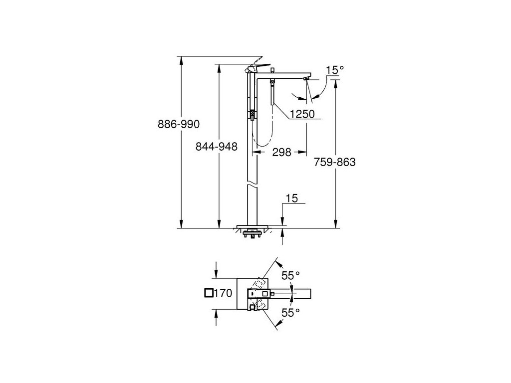 Grohe Eurocube Volně stojící Baterie vanová se setem, Supersteel 23672DC1