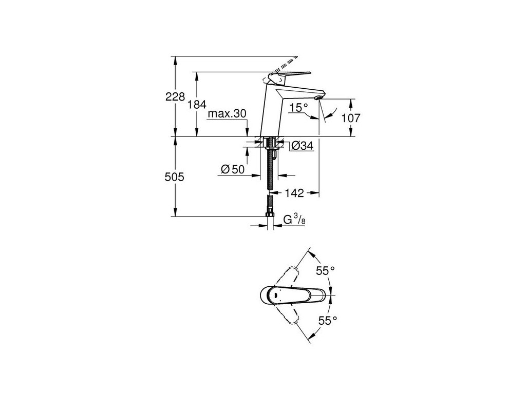 Grohe Eurodisc Cosmopolitan Baterie páková umyvadlová DN 15, velikost M 23449002