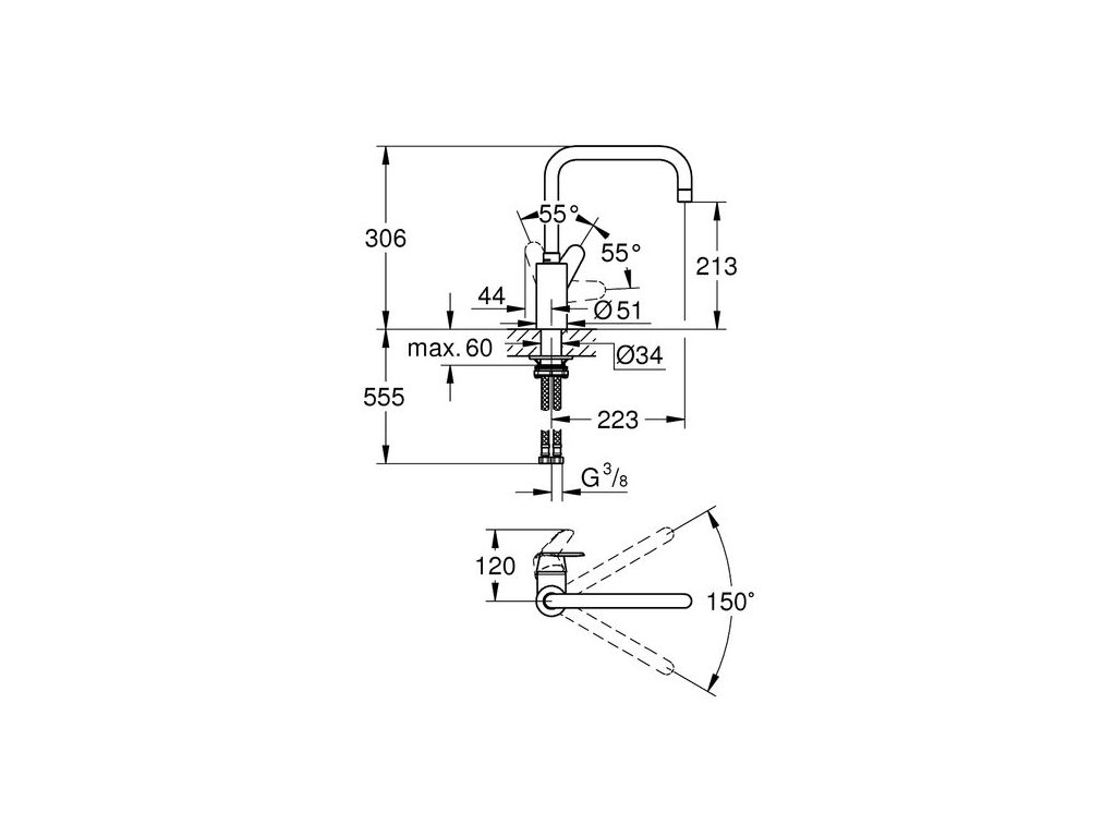 Grohe Eurodisc Cosmopolitan Páková Baterie dřezová, DN 15 32259003