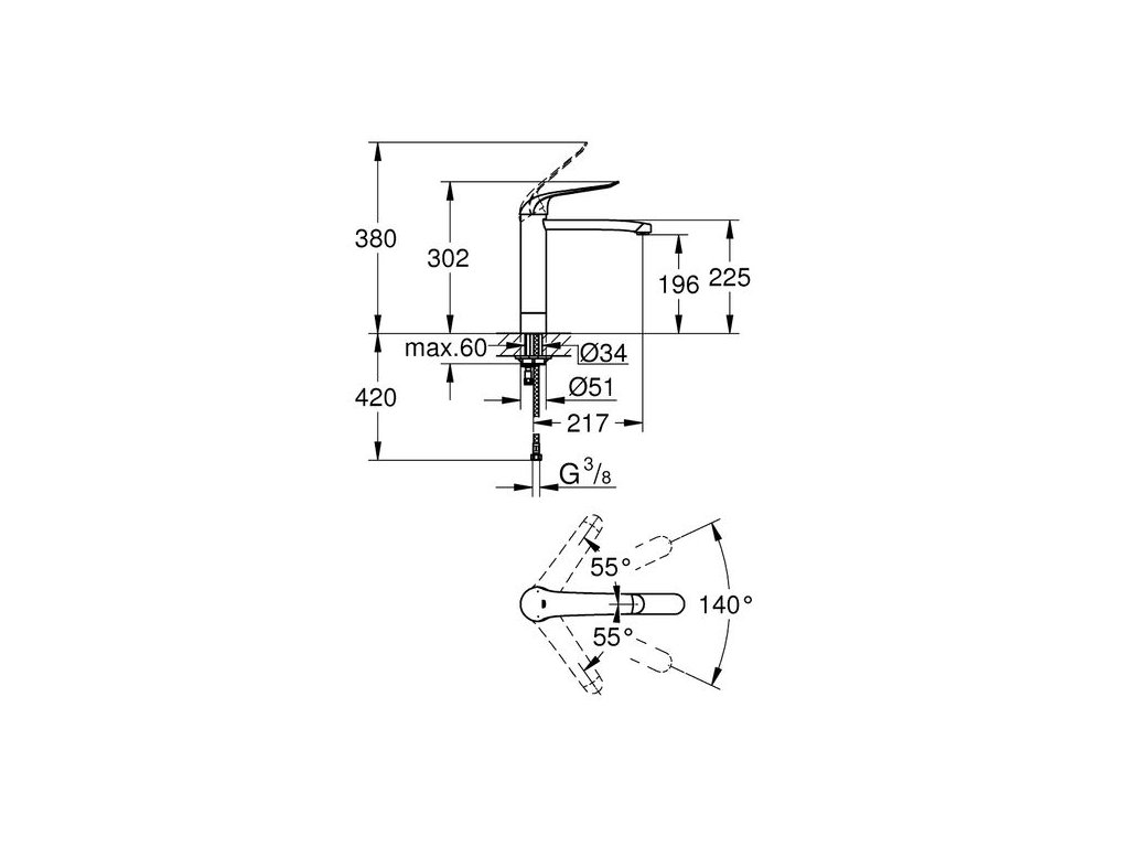 Grohe Euroeco Baterie umyvadlová stojánková bez výpusti, chrom