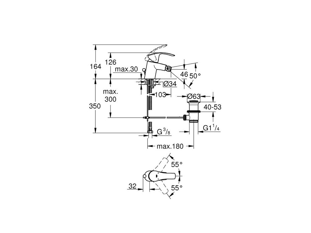 Grohe Eurosmart Baterie stojánková bidetová, s výpustí 32929002