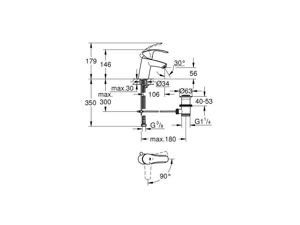 Grohe Eurosmart Baterie stojánková umyvadlová, s výpustí 33265002