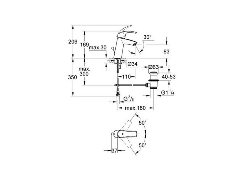Grohe Eurosmart Baterie stojánková umyvadlová vyšší, s výpustí