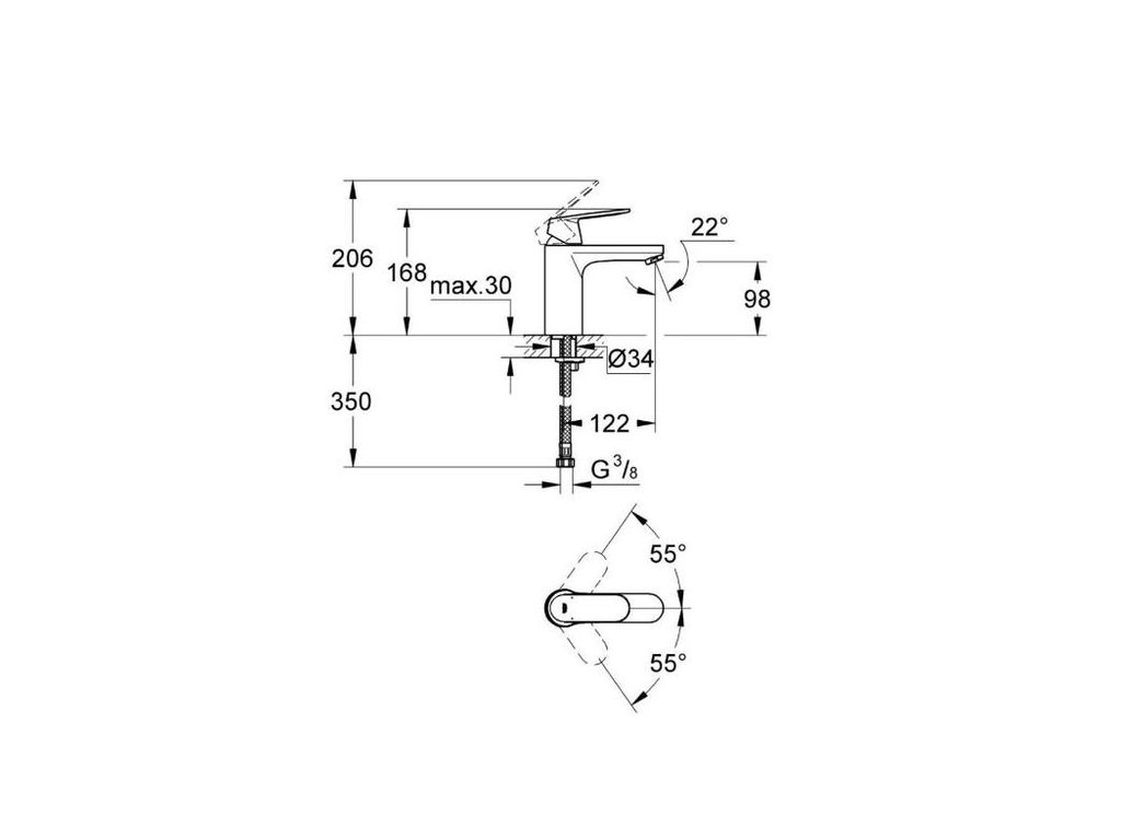 Stylová koupelnová baterie GROHE Eurosmart Cosmopolitan nabízí veškeré estetické i technologické přednosti moderního produktu. Nízká spotřeba: vychutnejte si výhody technologie GROHE EcoJoy a snižte tak spotřebu vody až o 50 %. Minimální údržba: pro navrácení lesku stačí otřít chromovaný povrch utěrkou. Vysoká trvanlivost: extra plynulé ovládání páky – i po mnohaletém používání – díky osvědčeným kartuším GROHE. Vychutnejte si pohodlí a eleganci koupelnové baterie Eurosmart Cosmopolitan!
