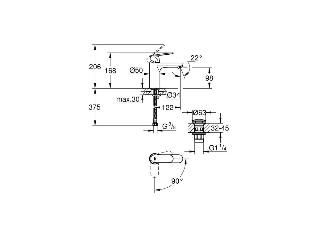 Grohe Eurosmart Cosmopolitan Baterie umyvadlová ColdStart s výpustí click-clack, chrom