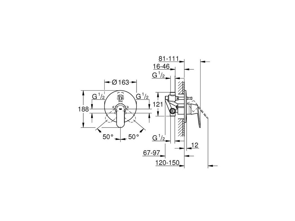 Grohe Eurosmart Cosmopolitan Vanová, Baterie podomítková včetně tělesa 32879000