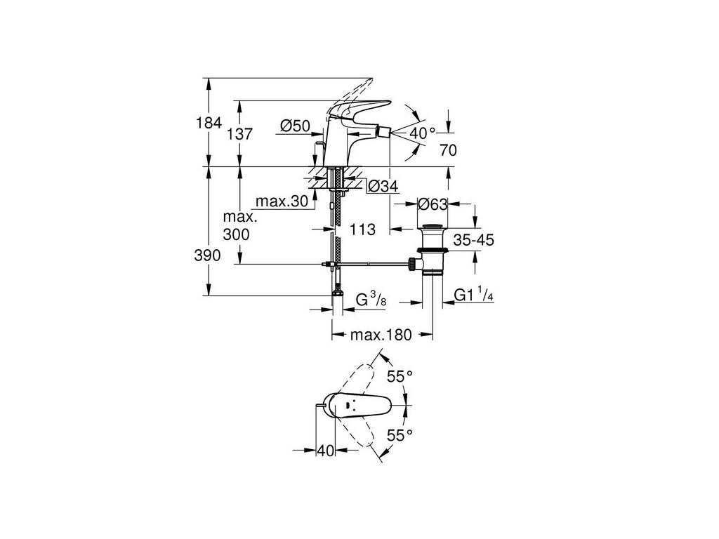 Grohe Eurostyle 2015 Solid Baterie bidetová, s výpustí 23720003