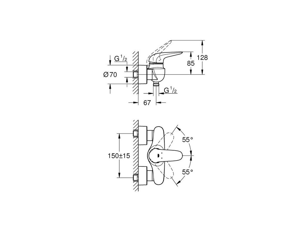 Nástěnná sprchová baterie GROHE Eurostyle okamžitě přidá do každé moderní koupelny designový a funkční klenot – bez toho, aniž by zlomila váš rozpočet. K jejímu ovládání slouží kovová páka, kterou je radost používat, a jejíž hladký pohyb a precizní manipulaci po celou dobu životnosti baterie zaručuje keramická kartuše GROHE SilkMove. Odolný, avšak nádherně vypadající chromový povrch GROHE StarLight zaručuje zachování zářivého lesku po mnoho let.